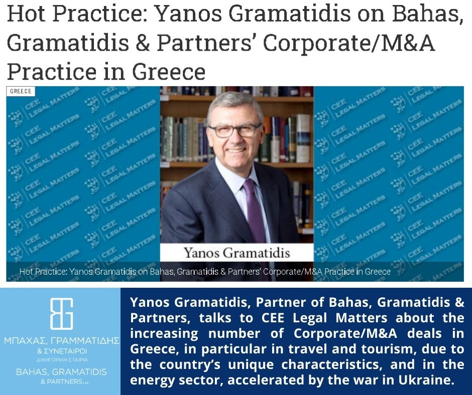 Yanos Gramatidis talks to CEE Legal Matters on Bahas, Gramatidis & Partners’ Corporate/M&A Practice in Greece